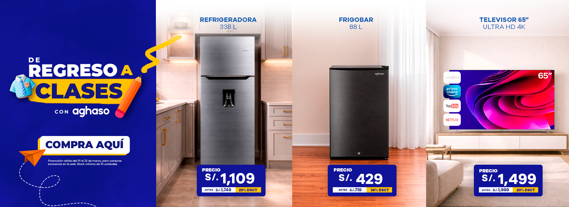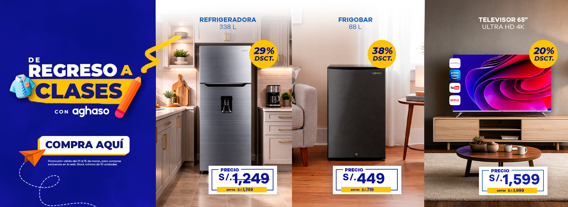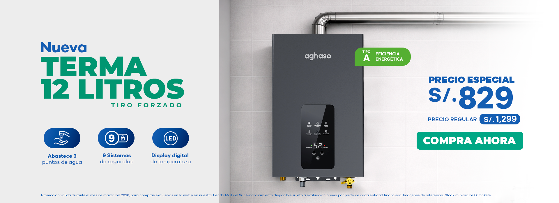 Conoce los productos que están en OFERTA en termas, televisores smart tv, cocinas, secadoras y más. ¡Solo en Aghaso!