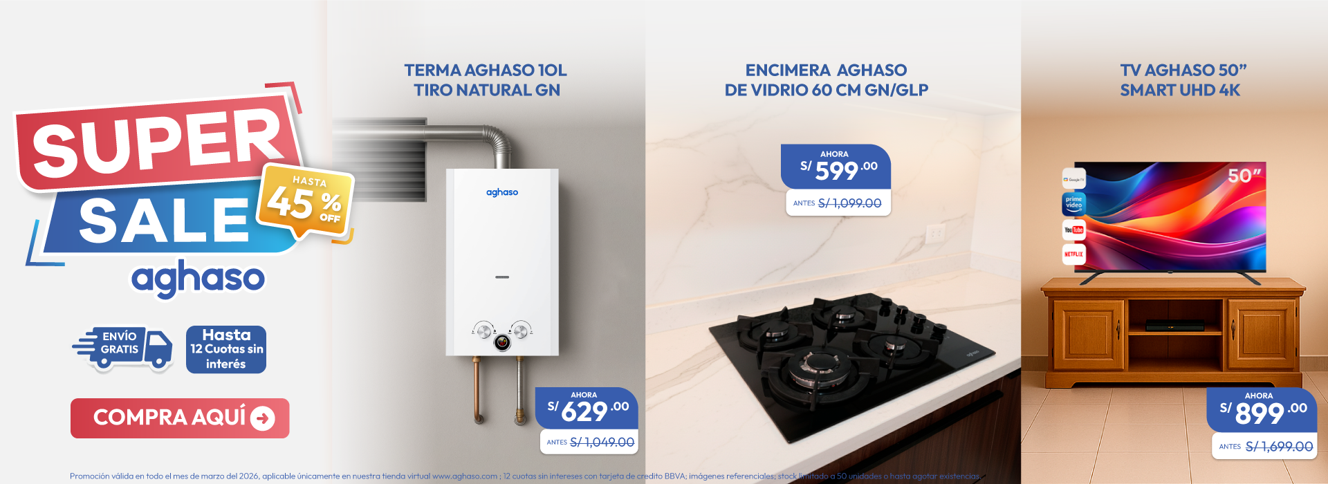 Leer más →Conoce los productos que están en OFERTA en termas, televisores smart tv, cocinas, secadoras y más. ¡Solo en Aghaso!