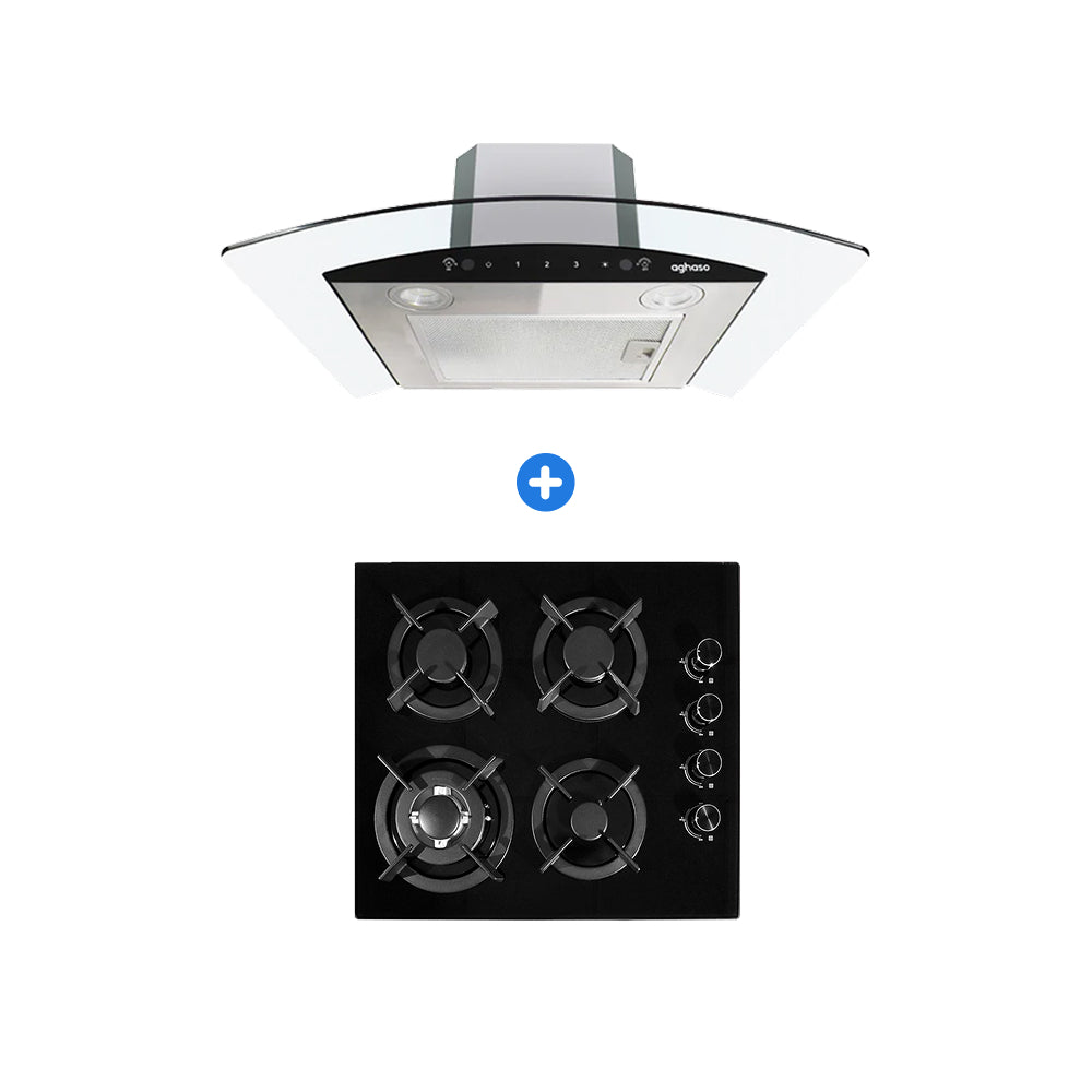 COMBO: ENCIMERA 4 HORNILLA + CAMPANA CHIMENEA TOUCH DE 60 CM