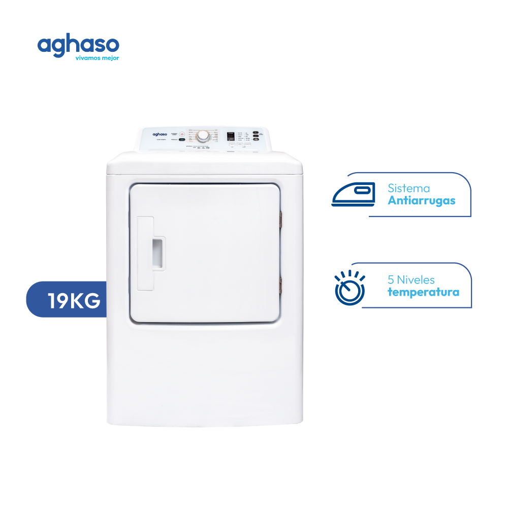 Con capacidad para 19 kg, esta secadora a gas natural es perfecta para familias grandes, ofreciendo un secado rápido y eficiente. En color blanco permite ver más amplio el espacio en el que se ubique, mientras que su tecnología optimiza el consumo de gas, ahorrando energía y tiempo. Con una gran capacidad y resultados impecables, es la opción ideal para mantener tu ropa lista en menos tiempo. ¡Disfruta de la comodidad y ahorro con Aghaso!